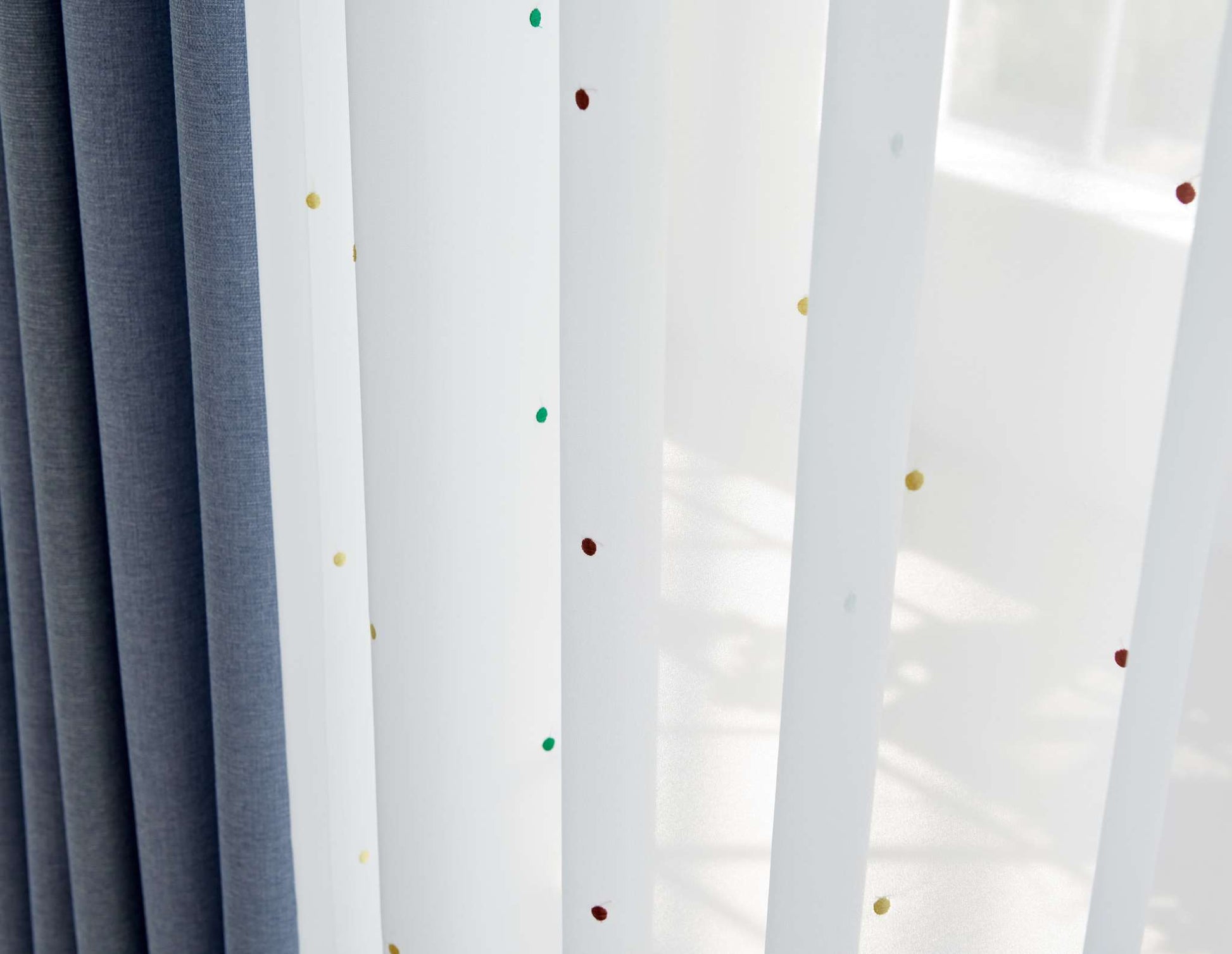 These curtains serve as more than just window coverings; they are stylish decor elements that enhance the overall look and feel of the room. The dotted embroidery adds visual interest and personality to the space, making it feel cozy and inviting.